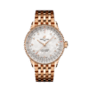 Unworn watch Breitling Navitimer 32, Small-scale traceable 18k Red Gold, Reference R77320E61A1R1 – epitomizes the essence of adventure and precision in horology. Thanks to its timeless design and cutting-edge technology, these watches will create a luxurious look and become a true companion for the modern woman, both on travel and in everyday life. This model features a mother-of-pearl dial with exquisite diamond hour markers for a jewel-like appeal – adding an elegance to an iconic watch. Recognizable Red Gold “B” emblem below the 12 o’clock position. Attract attention polished luminous Red Gold hour and minute hands and Red Gold Red-tipped seconds hand. Along the flange of the dial, there is a printed minute track with Arabic numerals indicating every 5 minutes. The watch has Small-scale traceable 18k Red Gold Pull/push non screw-locked crown with a two gaskets. The crown with a ribbed edge for a comfortable grip and from the butt Breitling logo. The dial closed by a Cambered sapphire crystal, glareproofed both sides. The screwed solid case back is made of Small-scale traceable 18k Red Gold. The dial is framed by the signature fixed beaded Small-scale traceable 18k Red Gold bezel. A masterpiece of engineering, Swiss Quartz Thermocompensate SuperQuartz movement Breitling’s in-house Caliber 77 contains 3 jewels. Its exceptional precision allows conquering every moment with unwavering precision. This model presented on a brushed and polished Small-scale traceable 18k Red Gold Navitimer bracelet, which fastens Small-scale traceable 18k Red Gold Folding Clasp. The water resistance is up to 50m/150ft. Â