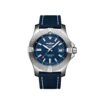 Breitling Avenger Automatic GMT 45 Night Mission. Black dial 45 mm DLC-Coated Titanium case. Unidirectional ratcheted bezel, Cambered sapphire, glareproofed both sides crystal. Breitling 32 calibre, self-winding mechanical, 2nd timezone (24 hr), 42 hrs power reserve, 21 jewels. Calfskin Leather strap Tang-type clasp. Water resistance 300 m (1,000 ft).