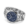 Unworn Breitling Men’s Watch Classic AVI Chronograph 42 Tribute to Vought F4U Corsair, brushed and polished Stainless Steel, 42mm, Reference A233801A1C1A1. Crafted with meticulous attention to detail and inspired by iconic aviation instrument design, this masterpiece seamlessly combines sophistication and functionality. The model features a Blue main dial and Blue sub-dials, which is decorated with a Silver-tone “B†emblem below the 12 o’clock position, create a striking union. The watch features the same Arabic numerals as hour markers as the original 1953 Co-Pilot models. The Silver-tone polished syringe-shaped hour and minute hands have luminescent filling and provide excellent legibility even in poor lighting. The elegant Silver-tone central seconds hand with a red tip looks harmonious. Along the outer contour, there is a minute scale with luminous indices that appear every 5 minutes. Along with unparalleled precision and sophistication, these iconic watches are highly functional. She implemented due to the presence of an additional seconds dial at the 9 o’clock position and a chronograph. It performs the following functions: column wheel mechanism; large central seconds hand counter, capable of keeping time up to 1/4th of a second; 30-minute sub-dial counter located at the 3 o’clock position; 12-hour counter sub-dial located at the 6 o’clock position. The watch has polished Stainless steel screw-locked crown with two gaskets. The crown has a ribbed edge for a comfortable grip and Breitling logo. On the right side case, also houses the chronograph Stainless Steel buttons a cylindrical shape. The dial closed by a Scratch Resistant Sapphire crystal. The watch has Stainless Steel Screwed Solid case back. The watch is equipped Stainless Steel bidirectional ratcheted rotating fluted bezel and Black labels in the form of Arabic numerals from 1 to 11 with a triangle at the origin. Breitling in house caliber B23 contains 27 jewels and has an approximate power reserve of 48 hours. The watch presented on a Brushed and polished Stainless Steel Bracelet of five links with Stainless Steel Deployant Buckle. The water resistance is up to 100m/330Ft.