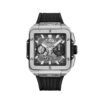 New for 2023, the Hublot Square Bang Unico Sapphire, 42mm, Ref# 821.JX.0120.RT model looks very cool and makes an unforgettable impression with its completely transparent design. A bold, revolutionary square version of the polished Sapphire Crystal case that breaks all conventions and represents the evolution of Hublots DNA, literally squaring the circle of the iconic porthole shape. The square skeletonized Sapphire Crystal dial makes an unforgettable impression. Large silver-tone minute and hour hands with a luminous top and skeletonized bottom and indexes hour markers with a luminous fill ensure perfect legibility in all conditions. The watch has small seconds dial located at the 3 o’clock position. Adding additional functionality to this model is the flyback chronograph, which includes a large, elegant central seconds hand with the H logo as a counterweight, and a 30-minute counter located at 9 o’clock. Polished titanium pushers located at the 2 and 4 o’clock positions operate it. Date window located the 3 o’clock positions. Helps you manage your watch polished titanium crown with the Hublot logo engraved with contoured grooves for improved grip. The dial closed by a Scratch-resistant Sapphire Crystal with Anti-reflective Treatment. The case back of the watch is also made of sapphire crystal, allowing you to observe the fantastic work of the watch movement. The model decorates a fixed square bezel made of polished Sapphire Crystal, secured with six signature Hublots titanium “H†screws. The HUB1280 UNICO Manufacture Self-winding Chronograph Flyback Movement with Column Wheel, which contains 43 jewels and has an approximate power reserve of 72 hours, ensures the watch’s flawless operation. This model is presented on an elegant and comfortable Transparent Structured Lined Strap with Titanium Deployant Buckle clasp. Like the round version of the Hublot Big Bang UNICO, the Square Bang features the company’s One-Click strap release system, which allows you to easily change straps (but only with compatible straps sold by Hublot). The water resistance is up to 100m/330ft (10 ATM).