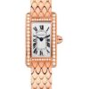 Medium size (41.6mm x 22.6mm) 18K white gold case set with round cut diamonds, silver and guilloche dial with Roman numerals, automatic winding Cartier calibre 077 movement, alligator strap with 18K gold deployant buckle. Water resistant to 30 meters.