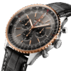 Unworn watch Breitling Navitimer B01 Chronograph 46 in Brushed and Polished Stainless steel and 18k Red Gold case, Reference UB01371A1B1P1. In a world where precision meets elegance, they reign supreme as they are crafted with meticulous attention to detail, embodying the spirit of aviation excellence and exuding timeless sophistication. 18k Red Gold hands with luminescent filling and 18k Red Gold baton indexes with luminous tips harmoniously complement the striking Grey with a fine sunray finish dial.  Impressive are the AOPA wings, symbol of the Aircraft Owners and Pilots Association, the largest pilots’ club in the world, which in the 1950s chose the Navitimer as its official watch at 12 o’clock. The technical excellence of this model is achieved through the chronograph, which includes the elegant red central second hand; black sub-dial for 30-minute counter at 3 o’clock; black 12-hour counter subdial at 6 o’clock. The functionality of the watch is enhanced by the typical circular slide rule on a black background, allowing pilots to perform all necessary flight calculations. The watch also has a black second’s sub-dial at 9 o’clock and a date indicator at 6 o’clock. The dial is covered with a domed scratch-resistant sapphire crystal with anti-reflective coating on both sides. The transparent sapphire crystal case back reveals the mesmerizing operation of the movement.  The watch features a bi-directional fluted 18k Red Gold bezel with a scalloped profile for easy grip. A masterpiece of engineering, Breitling’s in-house Caliber 01 contains 47 jewels and has an approximate power reserve of 70 hours, ensuring exceptional precision, allowing you to conquer every moment with unwavering precision. The watch presented on the original Breitling Black Alligator leather strap with contrasting off-white stitching which fastens Stainless steel Folding Clasp. The water resistance is up to 30m/99ft (3 ATM).