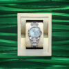 Unworn watch Rolex Day-Date 36, Platinum, 40mm, Ref# 228236-0018. Prestigious Day-Date watches remain at the cutting edge of modernity, despite the many decades passing by. As always elegant and luxurious, they are an excellent choice for people who value unique beauty, high style and absolute comfort. New for 2023 in the Rolex Day-Date 40 line is a model with an Ice Blue dial, the exclusive hallmark of platinum watches with highly legible Chromalight display with long-lasting blue luminescence. Its classic polished index hour markers and hands made of 18k White Gold with lumins fill look amazing on such a dial, emphasizing the sophistication of the model. The date indicator is traditionally placed at the 3 o’clock position. At the 12 o’clock, position is a semi-circular window showing the day of the week in full, providing an instantly recognizable, unique design of Day-Date. The ribbed screw-down crown in Platinum Triplock with double watertight system, adorned with the Rolex logo, is a traditionally recognizable part of Rolex watches. The dial is covered with a scratch-resistant anti-reflective sapphire crystal and a Cyclops lens above the date with double anti-reflective coating. A solid Platinum screw-down case back with fine fluted edges, closes the movement. The fluted fixed Platinum bezel is not only an aesthetic element of this watch, but also a true hallmark of Rolex. The in-house Rolex mechanical movement, caliber 3255, contains 31 jewels and has an approximate power reserve of approximately 70 hours powers. This delightful timepiece is presented on a Platinum President bracelet with semi-circular 3-piece links for flawless beauty. It features Rolex’s original concealed folding Crownclasp to secure the watch on your wrist. Water resistant up to 100m/330ft (10 ATM).