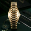 The Rolex fluted bezel is a mark of distinction. Originally, the fluting of the Oyster bezel had a functional purpose: it served to screw the bezel onto the case helping to ensure the waterproofness of the watch. It was therefore identical to the fluting on the case back, which was also screwed onto the case for waterproofness, using specific Rolex tools. Over time, the fluting became an aesthetic element, a genuine Rolex signature feature. Today the fluted bezel is a mark of distinction, in gold on this Day-Date 36.