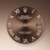 - Dial color: Chocolate dial with a fine sunrays and a applied polished 18k Everose Gold Roman numerals as hour markers