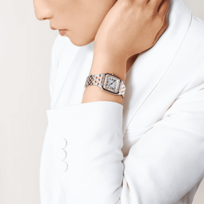Panthère de Cartier Medium 18ct Rose Gold & Steel Diamond Bezel Watch
