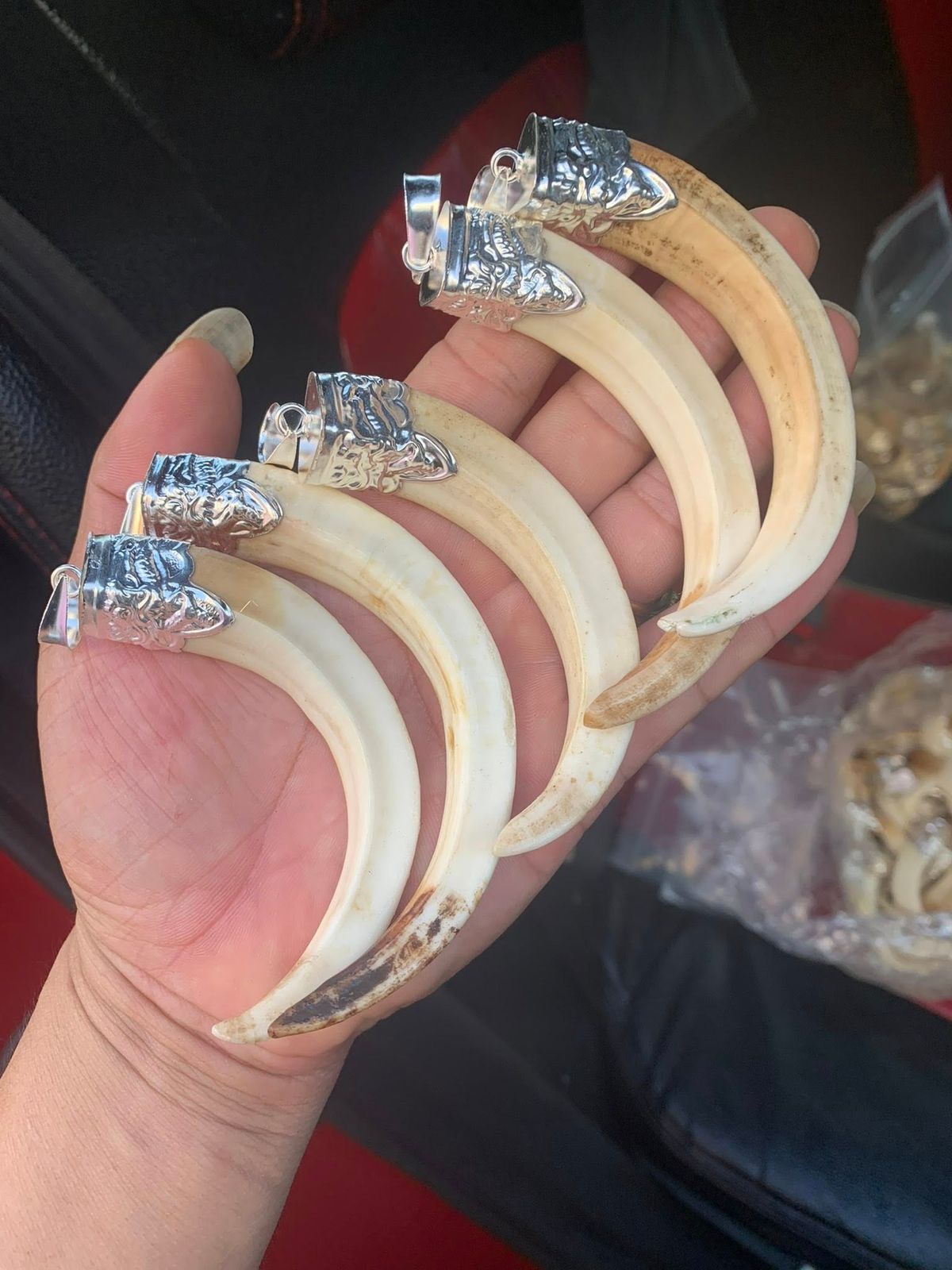 Handcrafted silver-wrapped fang-style pendant with a natural, rustic aesthetic. Each piece is carefully selected and finished by hand. Products are chosen at random, but only high-quality, well-crafted pieces are sent.
