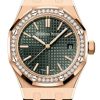 The captivating Purple Dial, adorned with Grande Tapisserie Dial Markers, adds a touch of regal charm to this Audemars Piguet creation. The meticulous craftsmanship extends to the certified Swiss-tested Automatic Movement, ensuring impeccable timekeeping and reliability for the discerning wearer.