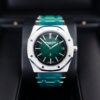 This certified authentic Brand New Audemars Piguet Jumbo Extra-Thin Watch, with the Model Number: 16202PT.OO.1240PT.01, has a Platinum 39 mm Octagonal Case with Screw Down Crown and a . This Men’s Audemars Piguet Jumbo Extra-Thin has an attractive Green Dial with Index Dial Markers. The certified Swiss tested Audemars Piguet Automatic Movement will keep perfect time for you. The elegantly designed Audemars Piguet Platinum with AP Folding Clasp will look great on your wrist.