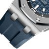Unworn Audemars Piguet Royal Oak Offshore DIVER 15720ST.OO.A027CA.01. 42 mm, Blue dial with “Méga Tapisserie†pattern, white gold applied hour-markers and Royal Oak hands with luminescent coating, black rotating inner bezel with zone from 60 to 15 minutes in white, Stainless steel case, glareproofed sapphire crystal and caseback, black ceramic screw-locked crowns, 4308 calibre, Selfwinding movement, 60 h power reserve, 32 jewels, Blue rubber strap with AP folding clasp. Water resistant to 300 m.