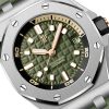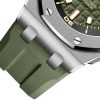 Unworn Audemars Piguet Royal Oak Offshore DIVER 15720ST.OO.A052CA.01. 42 mm, Khaki green dial with “Méga Tapisserie” pattern, pink gold applied hour-markers and Royal Oak hands with luminescent coating, black rotating inner bezel with zone from 60 to 15 minutes in beige, Stainless steel case, glareproofed sapphire crystal and caseback, black ceramic screw-locked crowns, 4308 calibre, Selfwinding movement, 60 h power reserve, 32 jewels, Khaki green rubber strap with AP folding clasp. Water resistant to 300 m.