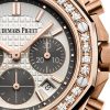 Unworn Audemars Piguet Royal Oak Offshore SELFWINDING CHRONOGRAPH 26231OR.ZZ.D003CA.01. 37 mm, Silver-toned dial with “Lady Tapisserie†pattern, grey ruthenium-toned counters, grey ruthenium-toned external zone, pink gold applied hour-markers and Royal Oak hands with luminescent coating, 18-carat pink gold case, glareproofed sapphire crystal, diamond-set bezel, 18-carat pink gold pushpieces and screw-locked crown, 2385 calibre, Selfwinding movement, 40 h power reserve, 37 jewels,  Grey rubber strap with AP folding clasp. Water resistant to 50 m.