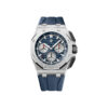 Unworn Audemars Piguet Royal Oak Offshore SELFWINDING CHRONOGRAPH 26420IO.OO.A009CA.01. 43 mm, Grey dial with “Méga Tapisserie†pattern, blue counters and external zone, white gold applied hour-markers and Royal Oak hands with luminescent coating, blue inner bezel, Titanium case, glareproofed sapphire crystal and caseback, grey ceramic bezel, pushpieces and screw-locked crown, sandblasted titanium pushpiece guards, 4401 calibre, Selfwinding movement, 70 h power reserve, 40 jewels,  Grey rubber strap with AP folding clasp. Water resistant to 100 m.