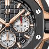 Unworn Audemars Piguet Royal Oak Offshore SELFWINDING CHRONOGRAPH 26420RO.OO.A002CA.01. 43 mm, Black dial with “Méga Tapisserie†pattern, rhodium-toned counters and external zone, pink gold applied hour-markers and Royal Oak hands with luminescent coating, black inner bezel, 18-carat pink gold case, glareproofed sapphire crystal and caseback, black ceramic bezel, pushpieces and screw-locked crown, sandblasted 18-carat pink gold pushpiece guards, 4401 calibre, Selfwinding movement, 70 h power reserve, 40 jewels,  Black rubber strap with AP folding clasp. Water resistant to 100 m.