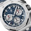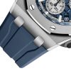 Unworn Audemars Piguet Royal Oak Offshore SELFWINDING CHRONOGRAPH 26420TI.OO.A027CA.01. 43 mm, Blue dial with “Méga Tapisserie†pattern, rhodium-toned counters and external zone, white gold applied hour-markers and Royal Oak hands with luminescent coating, blue inner bezel, Titanium case and bezel, glareproofed sapphire crystal and caseback, black ceramic pushpieces and screw-locked crown, sandblasted titanium pushpiece guards, 4401 calibre, Selfwinding movement, 70 h power reserve, 40 jewels,  Blue rubber strap with AP folding clasp. Water resistant to 100 m.