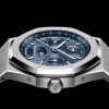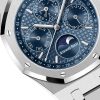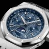 Unworn Audemars Piguet Royal Oak PERPETUAL CALENDAR 26574ST.OO.1220ST.03. 41 mm, Blue dial with “Grande Tapisserie†pattern, grey counters, white gold applied hour-markers and Royal Oak hands with luminescent coating, blue inner bezel, Stainless steal case, glareproofed sapphire crystal and caseback, 5134 calibre, Selfwinding movement, 40 h power reserve, 38 jewels,  Stainless steel bracelet with AP folding clasp. Water resistant to 20 m.