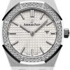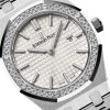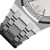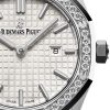 Unworn Audemars Piguet Royal Oak QUARTZ 67651ST.ZZ.1261ST.01, 33 mm, Silver-toned dial with “Grande Tapisserie†pattern, white gold applied hour-markers and Royal Oak hands with luminescent coating, Stainless steel case, 40 brilliant-cut diamonds, ~0.71 carats bezel, Quartz movement, 7 Jewels, Stainless steel bracelet with AP folding clasp. Water resistant to 50 m.