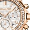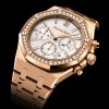 Unworn Audemars Piguet Royal Oak SELFWINDING CHRONOGRAPH 26715OR.ZZ.1356OR.01. 38 mm, Silver-toned dial with “Grande Tapisserie†pattern, silver-toned counters, pink gold applied hour-markers and Royal Oak hands with luminescent coating, 18-carat pink gold case, bezel set with brilliant-cut diamonds, glareproofed sapphire crystal, screw-locked crown, 2385 calibre, Selfwinding movement, 40 h power reserve, 37 jewels,  18-carat pink gold bracelet with AP folding clasp. Water resistant to 50 m.