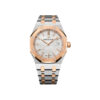 Unworn Audemars Piguet Royal Oak SELFWINDING 77350SR.OO.1261SR.01. 34 mm, Silver-toned dial with “Grande Tapisserie†pattern, pink gold applied hour-markers and Royal Oak hands with luminescent coating, Stainless steel case, 18-carat pink gold bezel, glareproofed sapphire crystal and caseback 18-carat pink gold, 5800 calibre, Selfwinding movement, 28 jewels, 50 h power reserve, Stainless steel bracelet with 18-carat pink gold links AP folding clasp. Water resistant to 50 m.