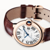 Cartier Ballon Bleu 18ct Rose Gold 36mm Automatic Leather Strap Watch WGBB0009. 18ct rose gold 36mm case and bezel all on a brown alligator leather strap. This watch has a silvered guilloche dial with blued steel hands and black roman numerals, date display at the 3 o’clock position. Water resistant up to 30m and sapphire crystal glass. Automatic movement.