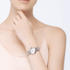 This stylish design from the famous Ballon Bleu de Cartier watches collection was made to look like it floats effortlessly on the lady’s wrist. Developed by French watchmaker, Cartier – the 28mm watch harnesses the power of precision with its accurate quartz movement, suspended in this robust stainless steel casing. We love the design of this Carter watch, which marries cutting edge engineering with complete sophistication. The timepiece floats like a balloon, adding a dose of elegance to any casual or formal wear. The lady’s 28mm Ballon Bleu de Cartier watch Features an attention-demanding aesthetic. A fluted crown set with a synthetic spinel cabochon sapphire complements the rich colour of the dial’s blued-steel sword-shaped hands. A 12 index silvered flinqué dial with sunray lacquered finish is embellished with 11 dazzling brilliant-cut diamonds, which take the place of the typical Roman numeral indexes. The lady can gaze into this elegantly crafted dial via a sapphire crystal glass front, treated with the brand’s anti reflective and scratch resistant technology. Lastly, the beautiful lady’s Ballon Bleu de Cartier watch is executed on this satin-finished stainless steel bracelet, which joins with a robust stainless steel case integrated with 50-meter water resistance.Â
