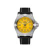 Breitling Avenger Automatic 45 Seawolf. Yellow dial 45 mm Stainless Steel case. Unidirectional ratcheted rotating bezel, Convex sapphire crystal, glareproofed both sides crystal. Breitling 17 calibre, Self-winding mechanical, 38 hrs power reserve, 25 jewels. Calfskin Leather strap Tang-type. Water resistance 3,000 m (10,000 ft).