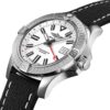 Unworn Breitling Avenger AUTOMATIC GMT A32397101A1X2, 43 mm, White dial, Stainless steel case. Unidirectional, ratcheted bezel. Cambered sapphire, glareproofed both sides crystal. Breitling 32 calibre, Self-winding mechanical, 2nd timezone (24 hr)Â movement, 42 hrs power reserve, 21 jewels. Calfskin leather strap with Pushbutton folding clasp. Water resistance 300 m.