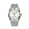 Breitling Chronomat B01 42 watch, case brushed and polished Stainless Steel, Reference AB0134101C1A1. The model has blue dial with black sub-dials and “B” emblem below the 12 o’clock position. This watch applied polished index hour markers with luminous fill and polished hands with luminous fill. Black dial flange with Tachymeter scale and fine printed minute/seconds track intervals on the outer perimeter dial. Date window located at the 6 o’clock position. Small seconds sub-dial at 9 o’clock. The dial closed by a Cambered Scratch-resistant Sapphire Crystal with glare-proofed both sides. Of Sapphire Crystal made transparent case back. The watch has polished Stainless Steel screw-locked crown with two gaskets. The crown has a ribbed edge for a comfortable grip. Â On its end there is Breitling logo is applied. Chronograph/Stopwatch functions: column wheel mechanism; large red central seconds counter hand; 30-minute counter sub-dial located at the 3 o’clock position; 12-hour counter sub-dial at the 6 o’clock position. On the right side case also houses the Stainless Steel chronograph buttons a cylindrical shape. The watch is equipped polished Stainless Steel unidirectional-ratcheted rotating bezel ring with brushed finished 1/4 hour rider tabs. The Model comes with Breitling Caliber B01 contains 47 Jewels and has an approximate power reserve of 70 hours. The watch presented on the Rouleaux Bracelet brushed and polished Stainless Steel with Push Button Folding Clasp. The water resistance is up to 200m/660ft.