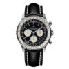 Breitling Navitimer 1 B01 Chronograph watch 46mm in polished finished stainless steel case, Reference AB0127211B1A1. This model has Anti-Reflective Scratch Resistant Sapphire, Solid flat Black main dial and bi-directional turning stainless steel bezel. The watch is self-winding mechanical Breitling caliber 01 automatic movement, containing 47 Jewels and has a power reserve of approximately 70 hours. The polished stainless steel Navitimer bracelet with Folding Clasp with Safety Latch. The water resistance is up to 30m/99ft (3 ATM).