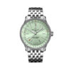 Unworn watch Breitling Navitimer Automatic 35, Stainless Steel, Reference A17395211A1P4 – epitomizes the essence of adventure and precision in horology. With its timeless design and cutting-edge engineering, this watch is a true companion for the modern explorer, whether navigating the skies or conquering the urban landscape. This model features a mother-of-pearl dial with 12 exquisite diamond hour markers framed in Red Gold and a tachymeter scale on the dial flange for a jewel-like appeal – adding a versatile elegance to an iconic navigation watch ready for any journey. Recognizable Red Gold “B” emblem below the 12 o’clock position. Attract attention polished luminous Red Gold hour and minute hands and Red Gold Red-tipped seconds hand with “B” logo as a counterweight. On the outer edge of the dial, there is a Navitimer scale with minutes and seconds in small print. The watch has Stainless Steel Pull/push non screw-locked crown with a two gaskets. The crown with a ribbed edge for a comfortable grip and from the butt Breitling logo. The dial closed by a Cambered sapphire crystal, glareproofed both sides. The screwed solid case back is made of Stainless Steel. The dial is framed by the signature bi-directional beaded Stainless Steel bezel with a slide rule. A masterpiece of engineering, Breitling’s in-house Caliber 17 contains 26 jewels and has an approximate power reserve of 38 hours, ensuring exceptional precision, allowing you to conquer every moment with unwavering precision. This model presented on an Alligator leather Pink Straight strap, which fastens Stainless steel Folding clasp. The water resistance is up to 30m/100ft.Â