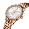 Unworn watch Breitling Navitimer Automatic 36, Small-scale traceable 18k Red Gold, Reference R17327211A1R1 – epitomizes the essence of adventure and precision in horology. With its timeless design and cutting-edge engineering, this watch is a true companion for the modern explorer, whether navigating the skies or conquering the urban landscape. This model features a mother-of-pearl dial with exquisite diamond hour markers and a tachymeter scale on the dial flange for a jewel-like appeal – adding a versatile elegance to an iconic navigation watch ready for any journey. Recognizable Red Gold “B” emblem below the 12 o’clock position. Attract attention polished luminous Red Gold hour and minute hands and Red Gold Red-tipped seconds hand. On the outer edge of the dial, there is a Navitimer scale with minutes and seconds in small print. The watch has Small-scale traceable 18k Red Gold Pull/push non screw-locked crown with a two gaskets. The crown with a ribbed edge for a comfortable grip and from the butt Breitling logo. The dial closed by a Cambered sapphire crystal, glareproofed both sides. The screwed solid case back is made of Small-scale traceable 18k Red Gold. The dial is framed by the signature bi-directional beaded Small-scale traceable 18k Red Gold bezel with a slide rule. A masterpiece of engineering, Breitling’s in-house Caliber 17 contains 26 jewels and has an approximate power reserve of 38 hours, ensuring exceptional precision, allowing you to conquer every moment with unwavering precision. This model presented on a brushed and polished Small-scale traceable 18k Red Gold Navitimer bracelet, which fastens Small-scale traceable 18k Red Gold Folding Clasp. The water resistance is up to 30m/100ft. Â