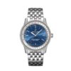 Breitling Navitimer Automatic 38 watch, polished stainless steel case, 38mm, Reference A17325211C1P1. This model has Blue dial with a fine sunray finish. Silver dial flange with Tachymeter scale. Polished luminous silver-tone hour and minute hands and applied steel index hour markers. Fine printed minutes/seconds track. Date window located the 6 o’clock positions. Stainless steel Pull/push non screw-locked crown with a two gaskets and logo Breitling. The dial closed by a Cambered sapphire crystal, glareproofed both sides. The screwed solid case back is made of Stainless Steel. The watch is equipped bidirectional rotating features a beaded Stainless Steel bezel. The watch is self-winding mechanical Breitling in-house caliber 17 contains 25 jewels and has an approximate power reserve of 38 hours. This model presented on a Blue Alligator/Crocodile Leather strap with a Stainless Steel Tang Buckle Clasp. The water resistance is up to 30m/100ft. Â