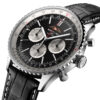 Breitling Navitimer B01 Chronograph. Black Dial 46 mm Stainless Steel case. Bidirectional, slide rule bezel. Cambered sapphire, glareproofed both sides crystal. Breitling 01 calibre, Self-winding mechanical, 70 hours power reserve, 47 jewels. Alligator Leather strap Folding clasp. Water resistance 30 m