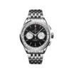 Breitling Premier Automatic Day Date watch 40mm, Stainless steel case, brushed and polished finished. Black dial and black dial flange with printed minute/seconds track. Applied luminous rose gold toned index hour markers and luminous Rose gold toned hands. Date display at the 6 o’clock position, Day of the week display centered on the 12 o’ clock position. Scratch-resistant sapphire crystal. Pull/push crown. Solid case back. Fixed stainless steel bezel. The Watch comes with Breitling caliber 45 Automatic movement, based upon ETA 2834-2, containing 26 Jewels, biting at 28800 vph, and has a power reserve of approximately 38 hours. The watch presented on the polished Curved Stainless Steel bracelet with Push Button Deployant Buckle. The water resistance is up to 100m/330ft.