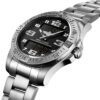 Breitling Professional Aerospace EVO. Black dial 43 mm Titanium case. Unidirectional, ratcheted Bezel Sapphire, glareproofed both sides crystal. Breitling 79 calibre, SuperQuartzâ„¢, thermocompensated quartz electronic, analog and 12/24 hr LCD digital display, display backlighting (NVG compatible), EOL indicator, 3 to 4 years power reserve. Titanium bracelet Fold clasp. Water resistance 100 m (330 ft).