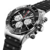 Breitling Super Chronomat B01 Stainless Steel – Black Dial 43 mm Stainless Steel case. Unidirectional ratcheted rotating bezel. Sapphire, glareproofed both sides crystal. Breitling 01 calibre, self-winding mechanical movement, 70 hours power reserve, 47 jewels. Rubber strap Folding clasp. Water resistance 200 m (660 ft)