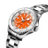 Introducing Unworn Breitling Ladies Watch Superocean Automatic 36, Stainless steel case, Reference A17377211O1A1: a fusion of style and functionality, designed to accompany you on every underwater adventure and beyond. Crafted with precision engineering and unmistakable Breitling flair, this timepiece is not just a watch—it’s a companion for the explorers of the deep and the adventurers of life. The 36mm case is made from durable brushed and polished finished Stainless steel and provides the perfect balance of appearance and comfort on the wrist. Sporty, fresh and vibrant, this model features a matte Orange main dial which is decorated a Silver-tone “B†logo at 12 o’clock and large silver luminous hour markers. It features an impressive Silver flange with a clearly readable minute scale, on which every 10 minutes are marked with large black Arabic numerals. The dial is decorated with polished Silver-tone hour and minute hands with luminous fill. An elegant Silver-tone central seconds hand with a luminous circle and a tip harmoniously complements them. The watch has a screw-locked screwing down crown of polished Stainless steel with two spacers. Its ribbed edge provides a comfortable grip. The Breitling logo is applied to the end of the crown. The dial closed by a convex sapphire crystal, glare-proofed both sides and solid Stainless steel case back. Unidirectional Stainless steel ratcheting bezel with ribbed edge, adorned with a polished White ceramic ring with luminous starting point and dive scale displays precise dive times. The Watch comes with Breitling Caliber 17 contains 26 Jewels and has an approximate power reserve of 38 hours. The model is presented on Breitling’s iconic and comfortable a Stainless steel Metal bracelet Straight, which fastens on Stainless Steel Push Button Folding Clasp. The water resistance is up to 300m (1000ft).