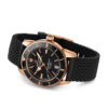 Breitling Superocean Heritage B20 Automatic. Black dial 42 mm 18k Red Gold case. Unidirectional, ratcheted bezel, Cambered sapphire, glareproofed both sides crystal. Breitling 20 calibre, self-winding mechanical, 70 hrs power reserve, 26 jewels. Rubber strap Tang-type. Water resistance 200 m (660 ft).