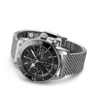 44.00 mm steel case, 15.65 mm thick, screw-locked crown with two gaskets, unidirectional ratcheted bezel, cambered sapphire crystal with glareproof treatment on both sides, black dial, Breitling 13 self-winding movement with calendar via dial aperture and chronograph function, approximately 48 hours of power reserve, steel Aero Classic bracelet. Water resistant to 200 m (660 ft).