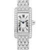 27mm x 15.2mm 18K white gold case set with brilliant-cut diamonds, 6.5mm thick, sapphire back, octagonal crown set with a brilliant-cut diamond, 18K white gold bezel set with a brilliant-cut diamonds, sapphire crystal, silver dial set with brilliant-cut diamonds, quartz movement with blued-steel sword-shaped hands, pink strap. Water resistant to 3 bar.