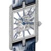 47.15 mm x 26.10 mm platinum case, beaded crown set with a ruby, silvered dial, calibre 1917 MC manual movement, dark grey semi-matte alligator-skin strap, platinum ardillon buckle. Water resistant to 3 bar (approx 30 metres).