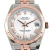 Everose gold case with a Jubilee everose gold bracelet. Fluted bezel. White dial with rose gold-tone hands and Arabic at 6 o’clock hour markers. Dial Type: Analog. Date display at the 3 o’clock position. Automatic movement. 2235 engine. Scratch resistant sapphire crystal. Screw down crown. Solid case back. Case diameter: 31 mm. Round case shape. Folding oysterclasp clasp. Water resistant at 100 meters / 330 feet. Functions: date, hour, minute, second. Luxury watch style. Watch label: Swiss Made.