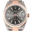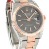 ?36mm Everose Rolesor case with Oystersteel monobloc middle case, screw-down steel back, screw-down 18K Everose crown, 18K Everose fluted bezel, dark rhodium dial, index hour markers with Chromalight, Rolex calibre 3235 self-winding movement with date at 3 o’clock, approximately 70 hours of power reserve, Everose Rolesor Oyster bracelet with flat three-piece links, folding Oysterclasp buckle with Easylink 5mm comfort extension link. Waterproof to 100 meters. Redesigned for Baselworld 2018 with updated case sides, lugs, and calibre 3235 movement. Datejust 126231