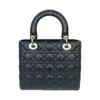 Diamond Quilted Leather Top Handle Bag – Elegant Crossbody Chain Purse – Black Structured Handbag for Women – Luxury Evening Clutch