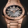 Hublot Big Bang Integrated Time Only King Gold, 40mm, Reference# 456.OX.0180.OX. An unworn man’s watch with a modern, bold design, in perfect harmony with the finest Hublot traditions, with a satin and polished 18K King Gold case. The bezel lug and black composite resin case strap are recognizable features of this model. Large 18K King Gold minute and hour hands with luminous filled tops and skeletonized bottoms ensure perfect legibility in all conditions. A red tip and a counterweight in the form of the manufacturer’s «H» emblem distinguish the elegant central second’s hand. Date window located at the 6 o’clock position. The 18k King Gold crown features a screw-down design and a black composite resin guard with contoured grooves for improved grip. The dial closed by a Scratch-resistant Sapphire Crystal with Anti-reflective Treatment. The case back of the watch is also made of sapphire crystal, allowing you to observe the fantastic work of the watch movement. The watch is equipped fixed 18k King Gold bezel, secured 6 immediately recognizable Hublots signature “H” screws style of Titanium. Their flawless operation is ensured Hublot Caliber HUB1710 Self-winding Movement, contains 27Jewels and has an approximate power reserve of 50 hours. This model is presented on an elegant and comfortable satin and polished 18k King Gold integrated bracelet with an 18k King Gold folding clasp. The water resistance is up to 100m/330ft (10 ATM).Â