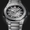 Unworn Hublot Big Bang Integrated Time Only Titanium 456.NX.0170.NX. 40 mm, Sapphire dial, Satin-finished and Polished Titanium Gold case, Sapphire with Anti-reflective Treatment crystal, Satin-finished and Polished Titanium with 6 H-shaped Titanium Screws bezel, HUB1710 calibre, Self-winding Movement, 50hours power reserve, Satin-finished and Polished Titanium Bracelet with Titanium Deployant Buckle Clasp. Water resistant to 100 m.