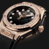 Unworn Hublot Big Bang ONE CLICK KING GOLD PAVÉ 485.OX.1280.RX.1604. 33 mm, Polished Black Set with 11 Diamonds dial, Polished 18K King Gold Set with 130 Diamonds for 0.4ct case, Sapphire with Anti-reflective Treatment crystal, Polished 18K King Gold Set with 36 Diamonds for 0.76ct bezel, HUB1120 calibre, Self-winding Movement, 40hours power reserve, Black Structured Lined Rubber Straps with 18K King Gold and Black-plated Titanium Deployant Buckle Clasp. Water resistant to 100 m.