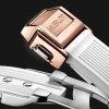 - Bracelet Material: White Structured Lined Rubber Straps