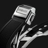 - Bracelet Material: Black Structured Lined Rubber Straps