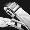 - Bracelet Material: White Structured Lined Rubber Straps